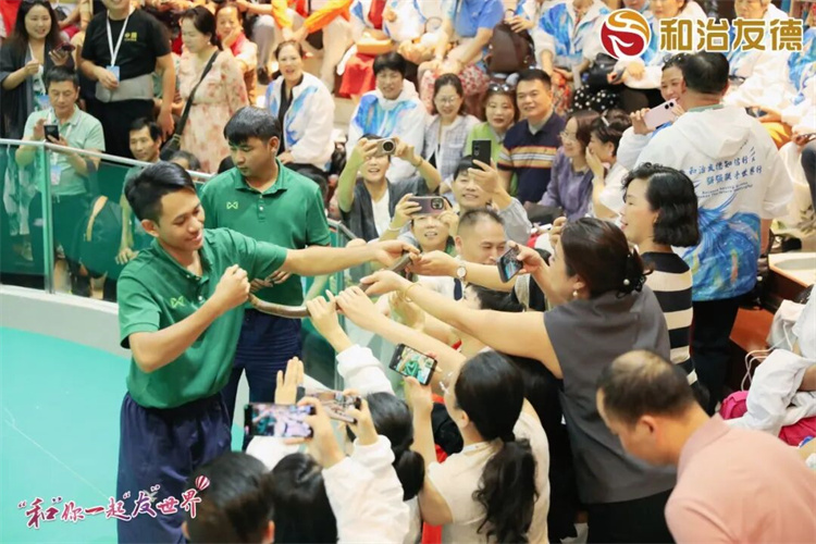在旅游研討會(huì)之后,大家共同觀看了和治友德杯泰拳爭(zhēng)霸賽。拳擊大賽熱血沸騰,選手們?cè)诶夼_(tái)上奮勇拼搏、揮灑汗水,每一次出擊都引來陣陣歡呼。