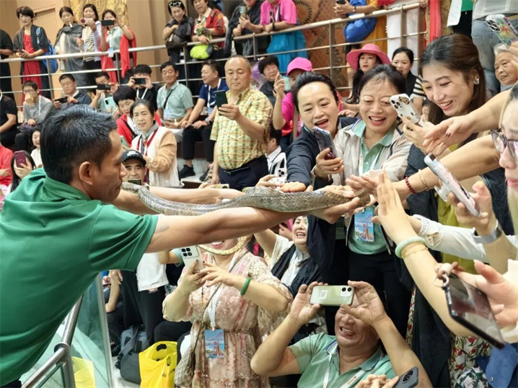 知信行的家人們來到了曼谷的蛇藥店。蛇園的經(jīng)歷讓家人們心率直線飆升——親眼目睹訓(xùn)蛇師與毒蛇的精彩表演,看著各類蛇在玻璃柜中悠然爬行,無不讓家人們嘆為觀止。