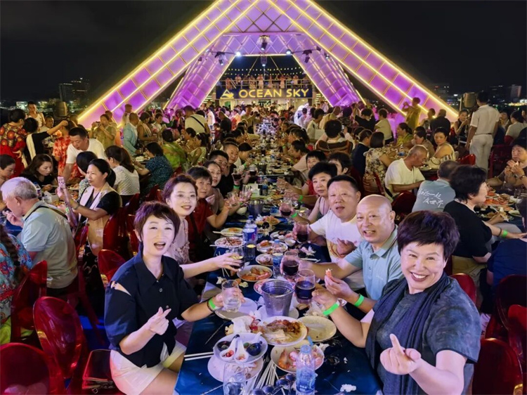 在富貴黃金屋,知信行的家人們與來自越南、老撾、緬甸的經(jīng)銷商們歡聚一堂。